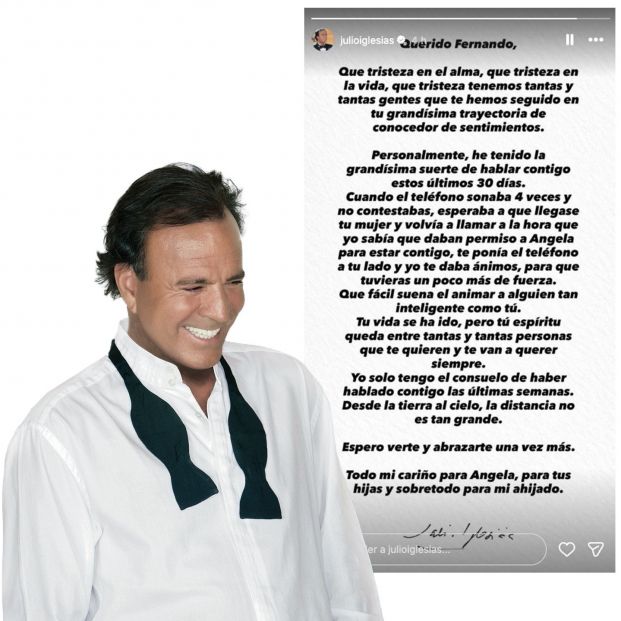 El emotivo mensaje de Julio Iglesias a su "querido" Fernando Ónega: "Qué tristeza en el alma"