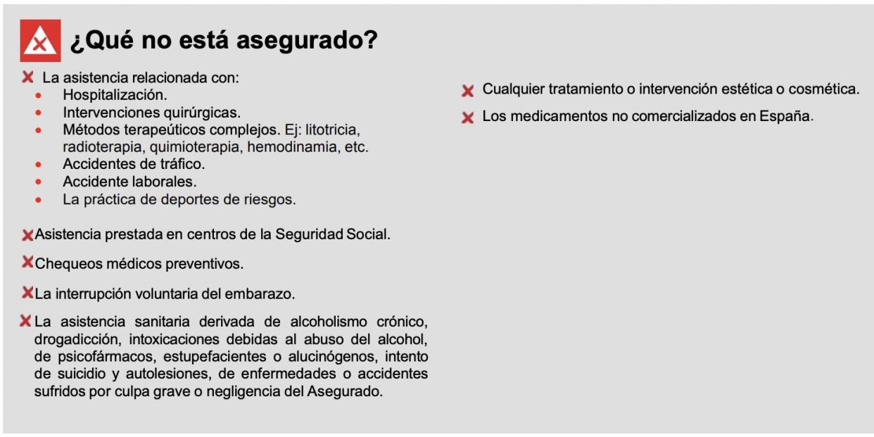 Preguntados por el tema, el propio banco reconoce que la hospitalización no está cubierta por ese seguro. "No incluye asistencia hospitalaria", nos aclaran. Además, en las condiciones de la póliza se especifica que "no está asegurada la asistencia a la hospitalización, las intervenciones quirúrgicas, los chequeos médicos preventivos o los métodos terapéuticos complejos como la radioterapia o la quimioterapia". En cuanto a las urgencias "quedan única y exclusivamente cubiertas las coberturas indicadas en el cuadro. Cualquier otro servicio necesario tendría que abonarlo el cliente", aclaran desde BBVA.