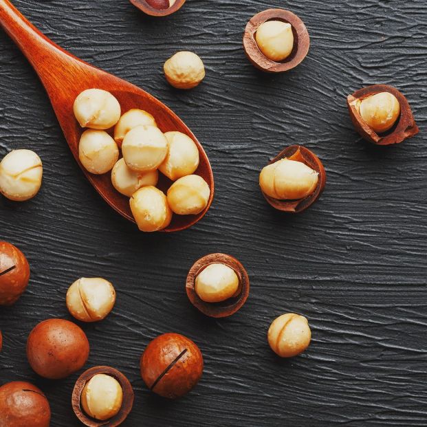 Nueces de Macadamia. Tal y como muestra dicho organismo, este fruto seco posee unas 700 kcal por cada porción de 100 gramos. No obstante, al tratarse de un alimento muy energético, son una de las opciones más adecuadas para deportistas y, además, no contienen gluten.