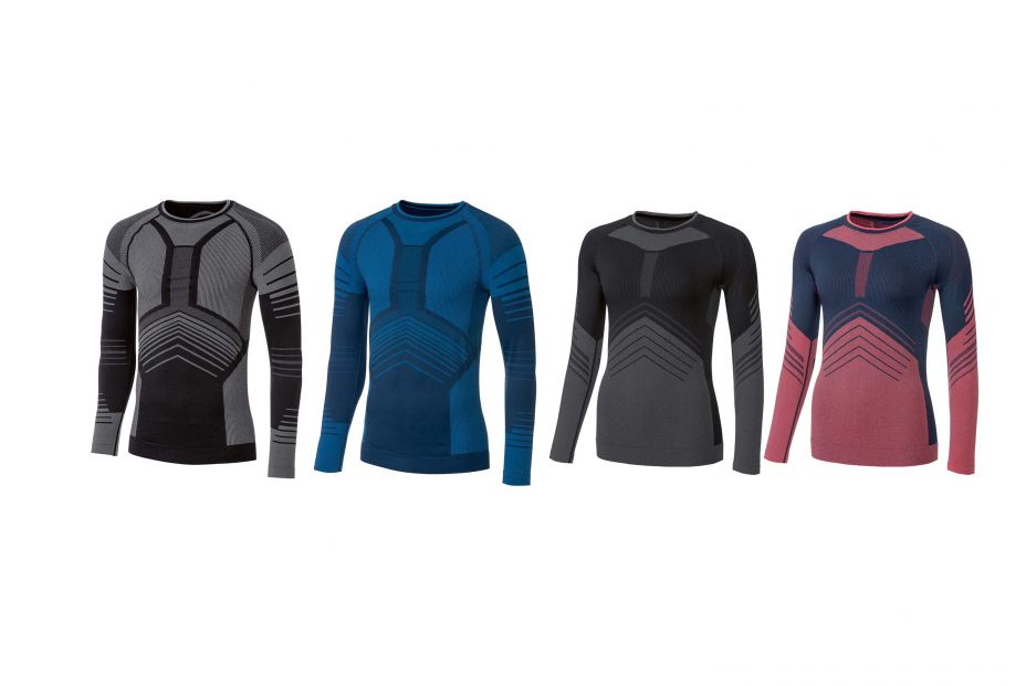 Camisetas para hombre y mujer (cuatro colores diferentes) sin costuras de manga larga. Su tejido absorbe la humedad de la piel y la expulsa al exterior, manteniendo así una piel seca y protegida del enfriamiento.