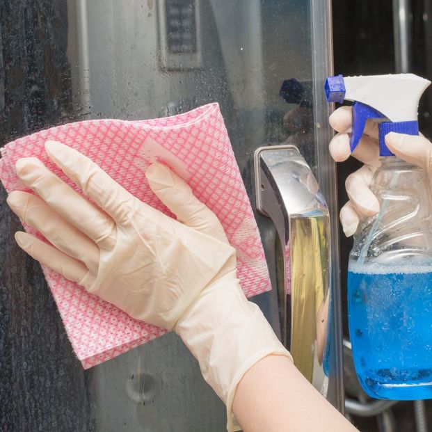 - Pulveriza la mezcla sobre toda la superficie de la mampara o humedece una bayeta de microfibra con el líquido.
