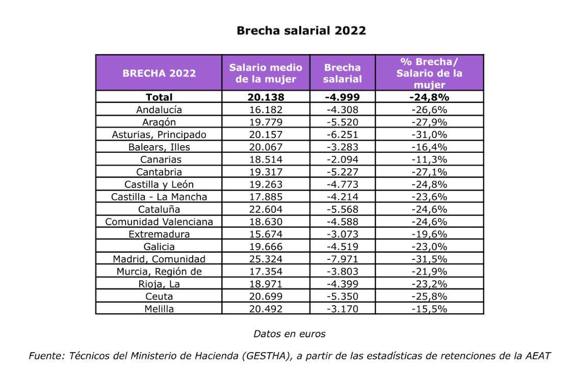 Acabar con la brecha salarial requerirá de 25 años, aseguran los Técnicos de Hacienda, de continuar con el ritmo de avance que se ha dado entre 1999 y 2022 No obstante, reconocen que la reducción de esta brecha se está intensificando en los últimos años. El aumento del Salario Mínimo Interprofesional está contribuyendo a disminuir la brecha salarial entre los dos géneros, se precisarían todavía esos 25 años para acabar con ella. En esta vía, los técnicos consideran que los aumentos del salario mínimo en 2022 y 2023 seguirán contribuyendo a mejorar el ritmo de cara a reducir la brecha salarial.