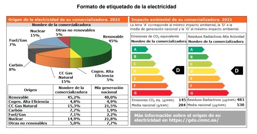 De esta forma, las eléctricas deberán ajustarse al formato de etiquetado determinado por la CNMC, especificando su origen y el impacto ambiental a partir del próximo mes de abril de 2022 y en relación a la energía producida a partir del 1 de enero de 2021.