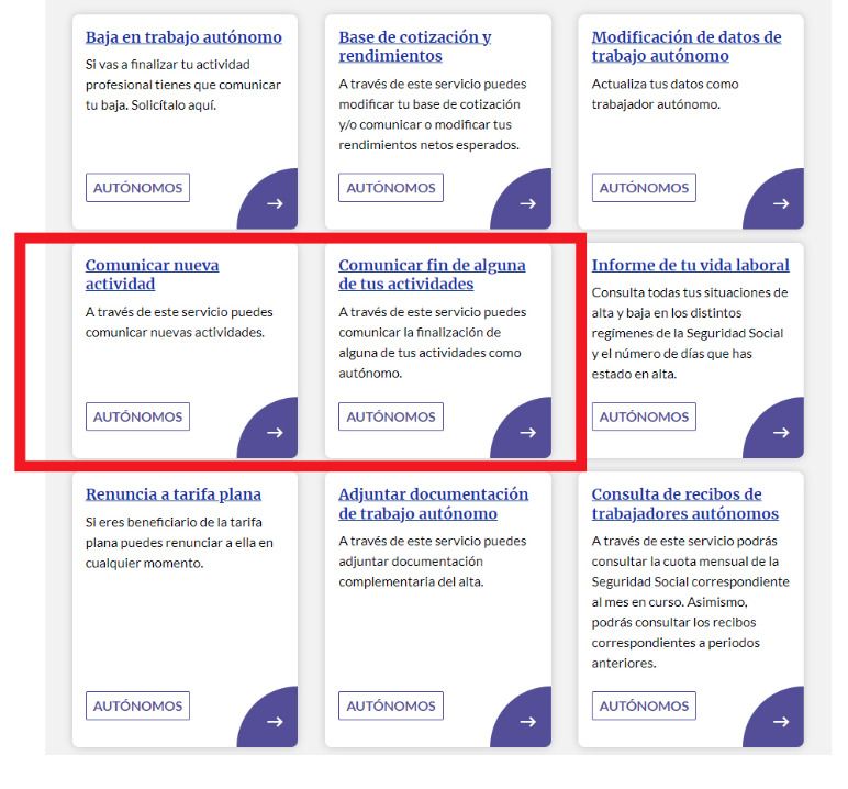 Tal y como explica el organismo en su página web, el enlace en cuestión lleva al área personal, desde donde el usuario puede "acceder a su ficha de autónomo y podrá comunicar una nueva actividad. Los pasos de este proceso serán muy similares a los del alta inicial, salvo con algunas excepciones".