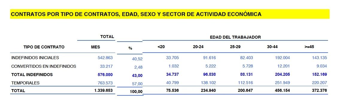 El análisis de las estadísticas del SEPE, publicadas este martes, refleja asimismo que se estanca la contratación indefinida de mayores de 45 años en mayo, mes que se ha saldado con 152.169 puestos de trabajo fijos, prácticamente el mismo número de ocupaciones sin fecha de término que obtuvieron en abril (151.782).