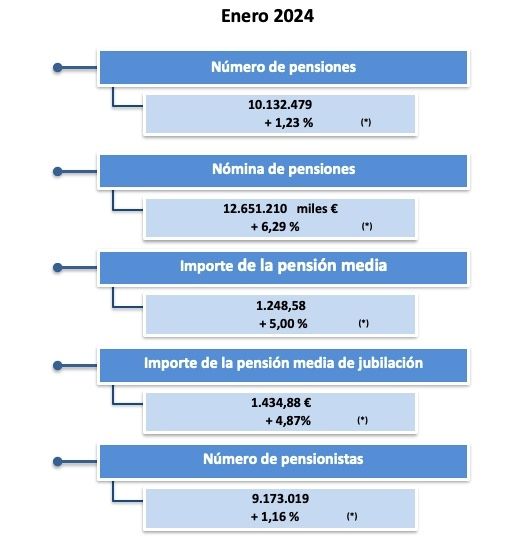 Tras la subida de las pensiones con el IPC aplicada desde principios de año, la pensión media de jubilación en España ha aumentado en enero un 4,9% interanual, hasta los 1.434,9 euros mensuales.