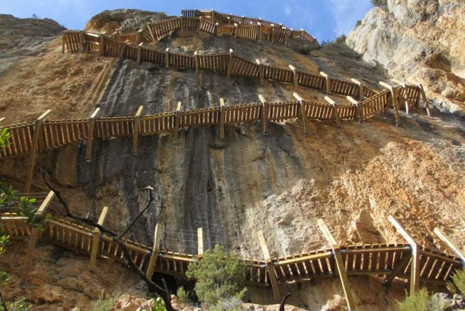 Congost de Mont-Rebei es una de las opciones de senderismo más espectaculares. Las paredes verticales del camino, con más de 500 metros de altura, separan las provincias de Lleida y Huesca.