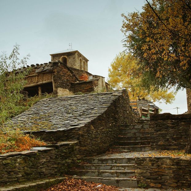 Pequeño pueblo de montaña donde predomina la pizarra en muros y tejados. Su aspecto compacto y el entorno natural lo hacen muy fotogénico.