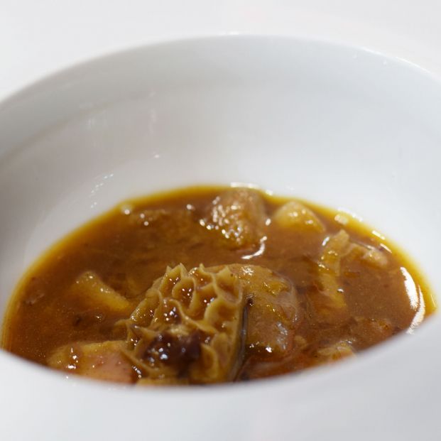 "Lo que hace diferentes a nuestros callos es que en Chirón utilizamos tripa negra, callo, morro y pata. Además, incorporamos un embutido asturiano que aporta un toque ligeramente picante. En el sofrito no puede faltar una buena cebolla con sello M Producto Certificado y nuestro propio aceite madrileño, todo ello combinado con jamón Joselito", explica Estefanía Cazalla, quien ha representado al restaurante Chirón en el concurso.