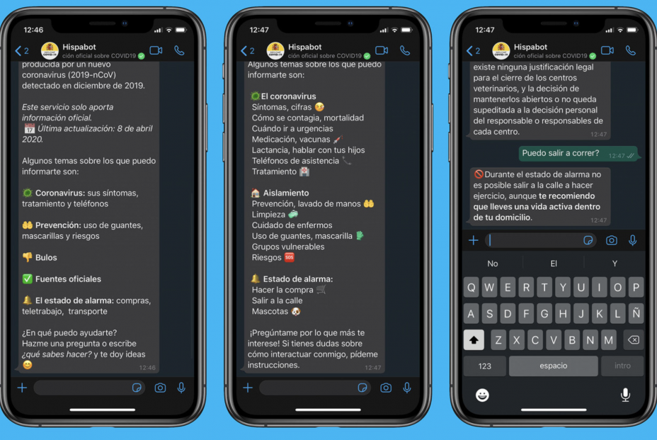 El Gobierno ha recibido 223.000 consultas sobre el coronavirus a través del asistente conversacional Hispabot-Covid19, el chat del WhatsApp 600 802 802, que ha creado para atender las necesidades de las personas mayores que no tienen acceso fácil a otros medios electrónicos.