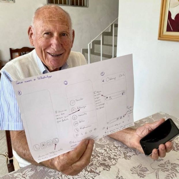 José tiene 88 años y ha tenido la suerte de contar con su nieta como profesora particular para que le enseñe a enviar fotos, reproducir audios y enviarlos a través de la aplicación de chat más utilizada del mundo, según informa La República. Para conseguirlo, Raphaela Martínez, su nieta, dibujó ella misma manuales en los que detallaba cada paso que su abuelo debía realizar para poder utilizar su móvil.