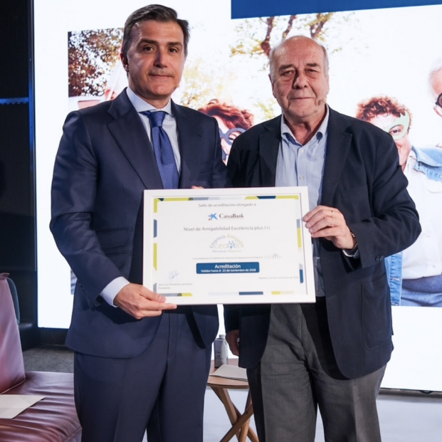 La acreditación, entregada por el presidente de la Confederación Española de Organizaciones de Mayores, José Luis Fernández Santillana, certifica que CaixaBank cumple con todos los criterios de Empresa Amigable con las Personas Mayores- Nivel Excelencia.