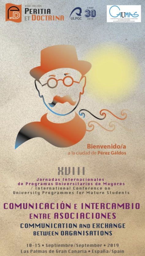 Del martes 10 al domingo 15 de septiembre se celebran en la capital grancanaria las XVIII Jornadas Internacionales de Programas Universitarios de Mayores, organizada por la Asociación Peritia et Doctrina surgida de los estudiantes graduados en los programas de Mayores de 55 años de la Universidad de Las Palmas de Gran Canaria.