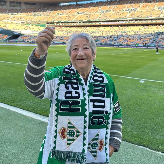 Y es que esta bética de corazón llevaba años queriendo asistir a un partido del Betis, y gracias a la Fundación Adopta Un Abuelo, que tiene como objetivo combatir la soledad no deseada que afecta a las personas mayores, y la colaboración del club, ha sido posible.