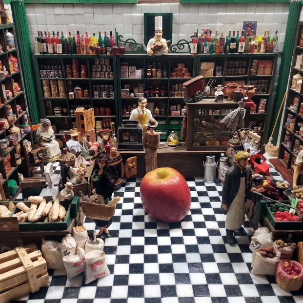 En concreto, esta exposición, que podrá visitarse hasta el 13 de noviembre, está compuesta por un total de 11 vitrinas con diferentes composiciones artísticas a escala, recreando todo tipo de trabajos y establecimientos: tiendas de ultramarinos, panaderías, estancos, quioscos de prensa y librerías, pasando por boutiques de moda, talleres de costura, de encuadernación o de reparación de bicicletas; hasta puestos de antigüedades, barberías, obradores, carpinterías, o zapaterías.