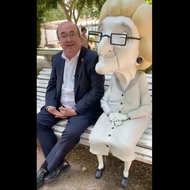 En un video grabado en el parque de la Dehesa de Soria, el Ministro aparece junto a Dominga, una figura que representa una persona mayor sentada en un banco. "Animaos, id al cine. Dominga, al cine, que son dos euros", dice Iceta en el video en el que recuerda el cariño con el que se debe "tratar a los mayores".