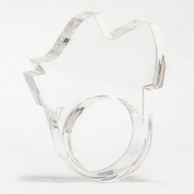 Es un anillo de metacrilato inspirado en las formas del Museo Guggenheim Bilbao, diseño exclusivo de Catalina D’Anglade.