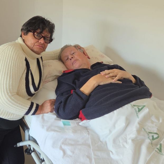 El hombre permanece encamado, no puede caminar ni incorporarse por sí mismo y precisa cama hospitalaria y grúa para su movilización. Desde hace seis años cuentan con un servicio municipal de ayuda a domicilio durante varias horas al día, aunque es ella quien asume la mayor parte de los cuidados, higiene, alimentación y medicación.