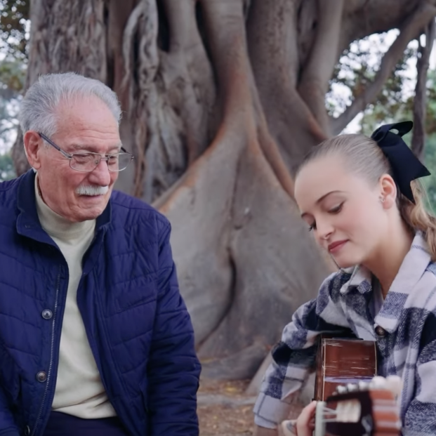 “He viajado por cada rinconcito de este mundo, he visitado mil ciudades de este mundo y no hay nada como volver a casa y conectar”, empieza la letra de la canción. El abuelo se queda sorprendido mirando a su nieta y en un momento se ve como no puede contener las lágrimas de la emoción.