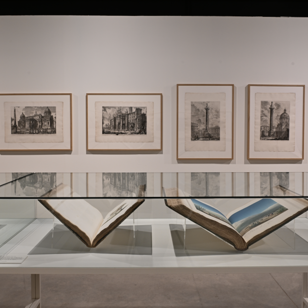 Los grabados de Piranesi dialogan con la obra de ScanLAB Projects, un recorrido inédito por Ecos en la luz. Fragmentos del Foro Romano (2025), utilizando tecnología avanzada de escaneo láser (LiDAR) para reconstruirlo en tres dimensiones. A través de estos escaneos, accedemos no solo a asombrosos detalles físicos del lugar, sino también a nuevas formas de mirar, registrar y entender el pasado. Una herramienta puesta al servicio de la observación y la interpretación del mundo. Las imágenes que genera manifiestan cómo, una vez más, la historia del arte, la fotografía y la arqueología influyen y moldean —en este caso— la creatividad digital. Al igual que el grabado, el proceso del LiDAR ejemplifica el dominio técnico y la comprensión profunda de la realidad.