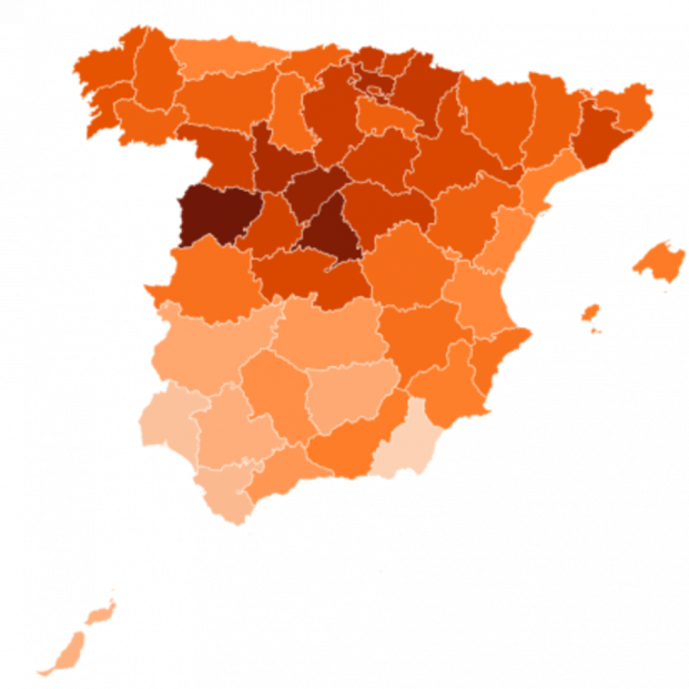 Las provincias del norte encabezan el mapa, mientras Melilla registra el valor más bajo