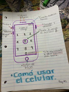 La guía que Tabahta hizo a todo color para su abuela consta de seis páginas en las que se representa la pantalla del móvil con todo lujo de detalles como las instrucciones para encender, apagar y desbloquear el móvil; la pantalla de inicio; las funciones básicas de WhatsApp; o cómo ver vídeos en YouTube y fotografías. Y todo de manera que la septuagenaria pueda entenderlo con explicaciones como "ver cómo va a estar el clima toda la semana", "para tomar fotos", "ver qué día es", "mandar mensajes a nosotros", "escribir algo para que no se olvide"...