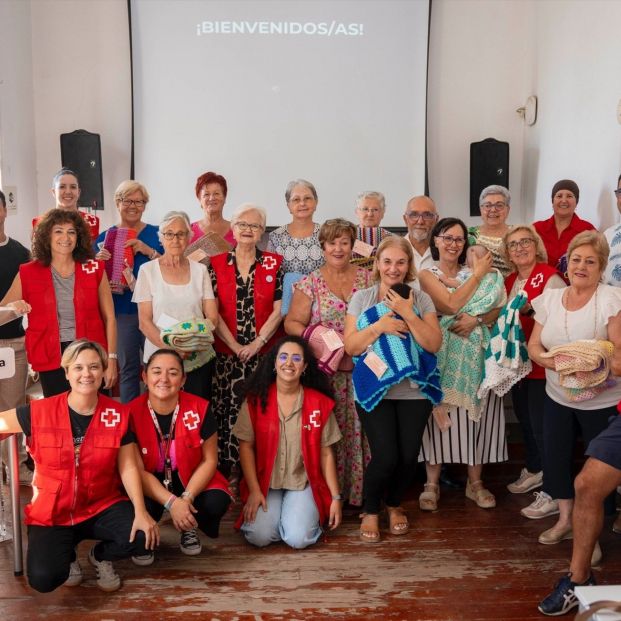 Un grupo de mujeres mayores de 65 años, participantes en el proyecto Red Social para Personas Mayores: Enrédate de Cruz Roja Española en Almería, ha entregado recientemente mantas de cuna elaboradas a mano para las familias del programa de acogimiento familiar.