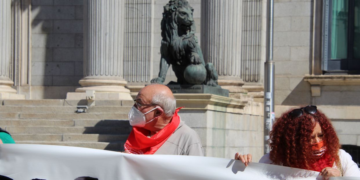 Pensionistas vascos y madrileños se concentran delante del Congreso de los Diputados para pedir que se garanticen pensiones dignas. Han entregado sus reivindicaciones a la presidenta del Pacto de Toledo, Magdalena Valerio #pensiones pic.twitter.com/ArPbpZDWEu