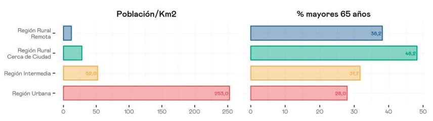En este contexto, el informe de EsadeEcPol pone de manifiesto diferencias entre las zonas rurales y las urbanas. Según su análisis, en las primeras, el porcentaje de población mayor de 65 años ronda el 40%, mientras que, en las segundas, este volumen cae al 28%. El porcentaje restante de mayores viven en ciudades pequeñas (32%).