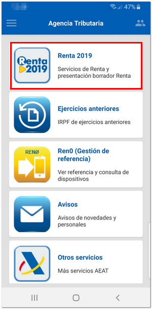Una vez iniciada la sesión deberás volver a la pantalla principal de la aplicación para entrar en el “apartado de renta 2019”. Ahí puede que la propia app te pida resolver un par de errores de la declaración.