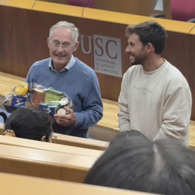 El momento fue sellado con un abrazo entre padre e hijo frente a todos los alumnos, poniendo fin a una trayectoria muy larga como docente. Aunque el doctor Carracedo deja las aulas tras cumplir 70 años, continuará vinculado a diferentes proyectos de investigación.