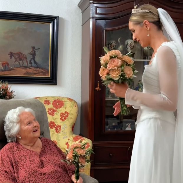 "La abuela de Rocío no pudo ir a la boda. Y ella le lleva su ramo a casa nada más salir de la iglesia", explican en el vídeo, que no ha tardado en hacerse viral en las redes sociales.