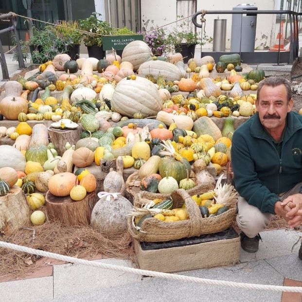 El jardinero Eustaquio Bote ha señalado que para la muestra se han seleccionado más de 300 calabazas de todas las formas, tamaños y colores que juntas superan los 2.000 kilos de este voluminoso fruto, pero, al mismo tiempo, otras muchas calabazas siguen estando en el huerto para que el visitante aprecie cómo y dónde se cultivan.