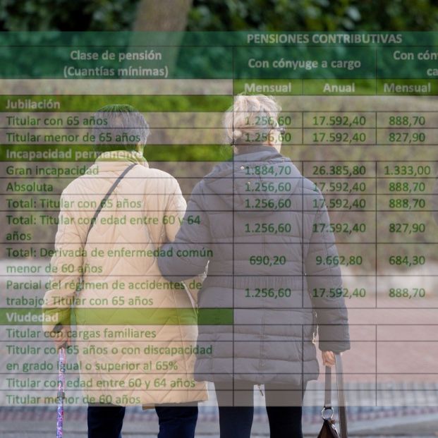 Hay que aclarar que las pensiones mínimas contributivas tienen un importe que depende de si la persona tiene cónyuge a cargo o cónyuge no a cargo. Por ejemplo, en 2026, las pagas mínimas para un titular con 65 años o más será de 17.592,40 euros anuales (1.256,60 euros al mes) si tiene un cónyuge a cargo. En cambio, un jubilado de 65 años con cónyuge, pero no a cargo, cobrará 888,70 euros mensuales (12.441,80 euros anuales).
